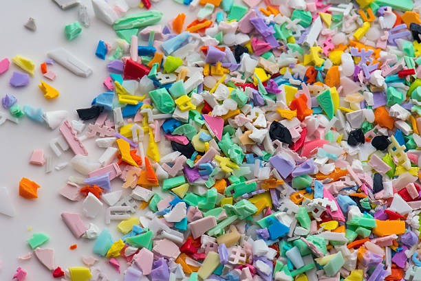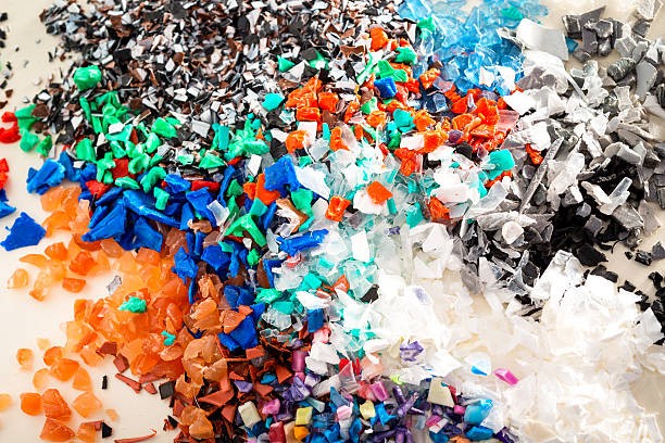 Different regrind polymers after milled in a shredder for recycling processDifferent regrind polymers after milled in a shredder for recycling process